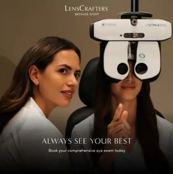 Eye exams available at the independent doctor of optometry at or next to LensCrafters. Doctors in some states are employed by LensCrafters.