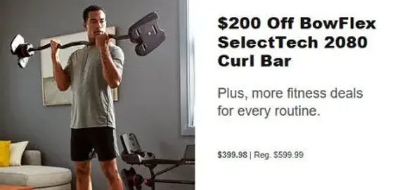 Stop by our store and enjoy $200 off on BowFlex SelectTech 2080 Curl Bar. Plus, more fitness deals for every routine.