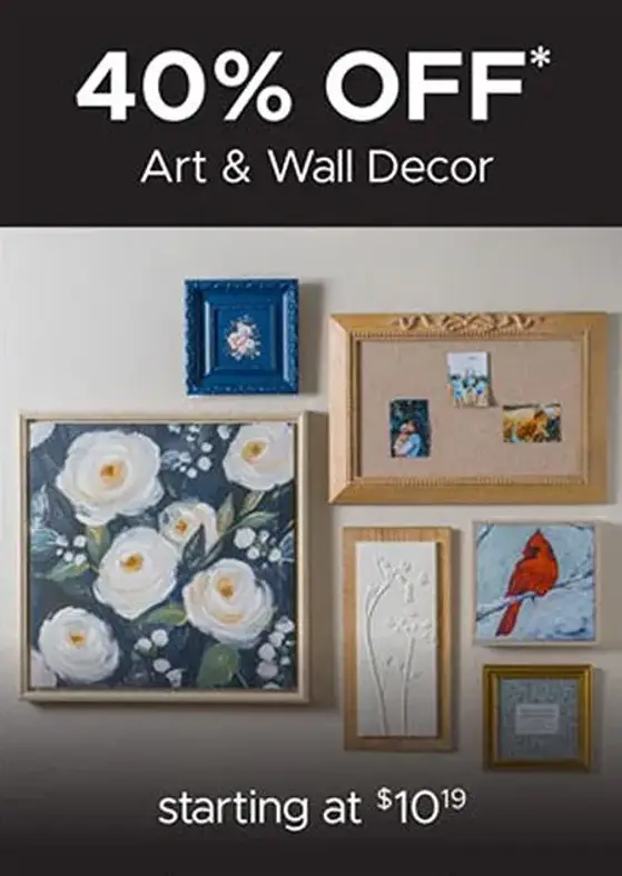 Stop by and take 40% off art & wall decor in store for a limited time.