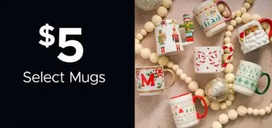 Hurry in and enjoy $5 select mugs in store for a limited time.