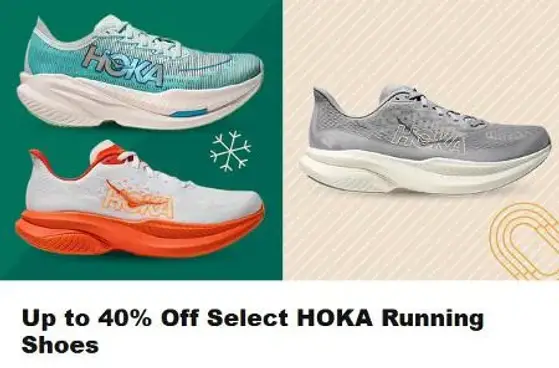 Don't miss on this sale! Shop in store and get up to 40% off select HOKA running shoes.