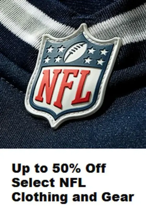 Don't miss this! Shop in store and get up to 50% off select NFL clothing and gear.